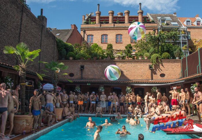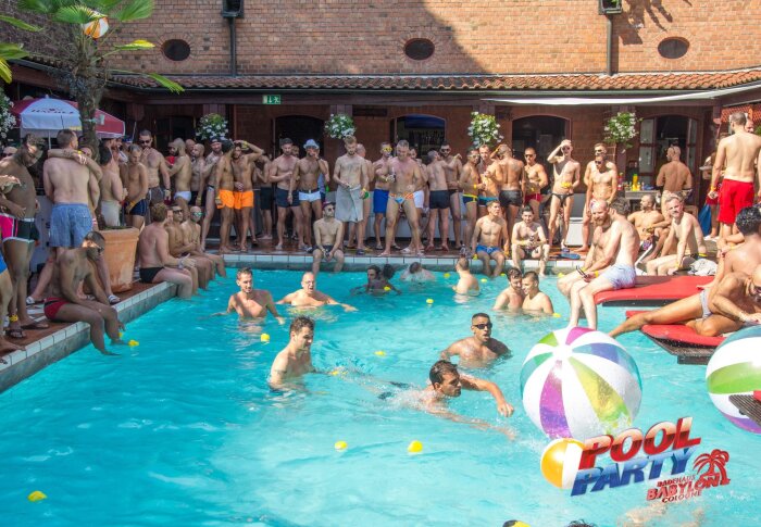 Pool party meets cruising sauna: The Cologne Pride Babylon Pool Party is the crowning finale of Cologne Pride. On over 1,400 m², the Babylon bathhouse becomes a party location. Hot guys, sun and first-class beats come together. The outdoor area offers a large open-air pool and a sun deck, while saunas and cruising areas beckon inside.