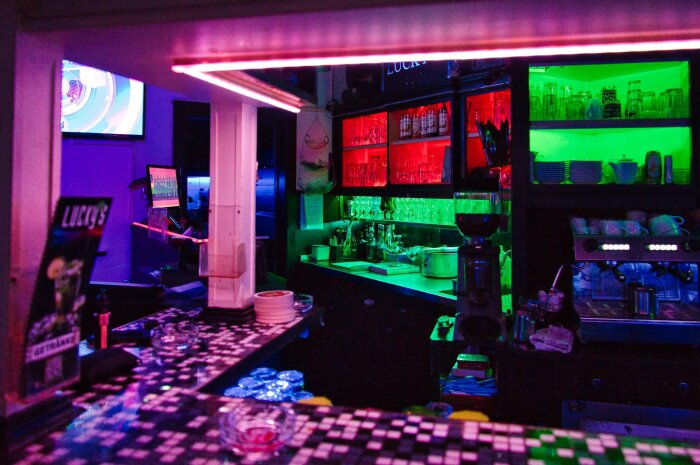 Luckys: The popular gay bar and contact point for the LGBT community in Frankfurt am Main. For years a scene institution for gays and friends. Experience theme nights with karaoke, drag shows and happy hours with long drinks and cocktails.